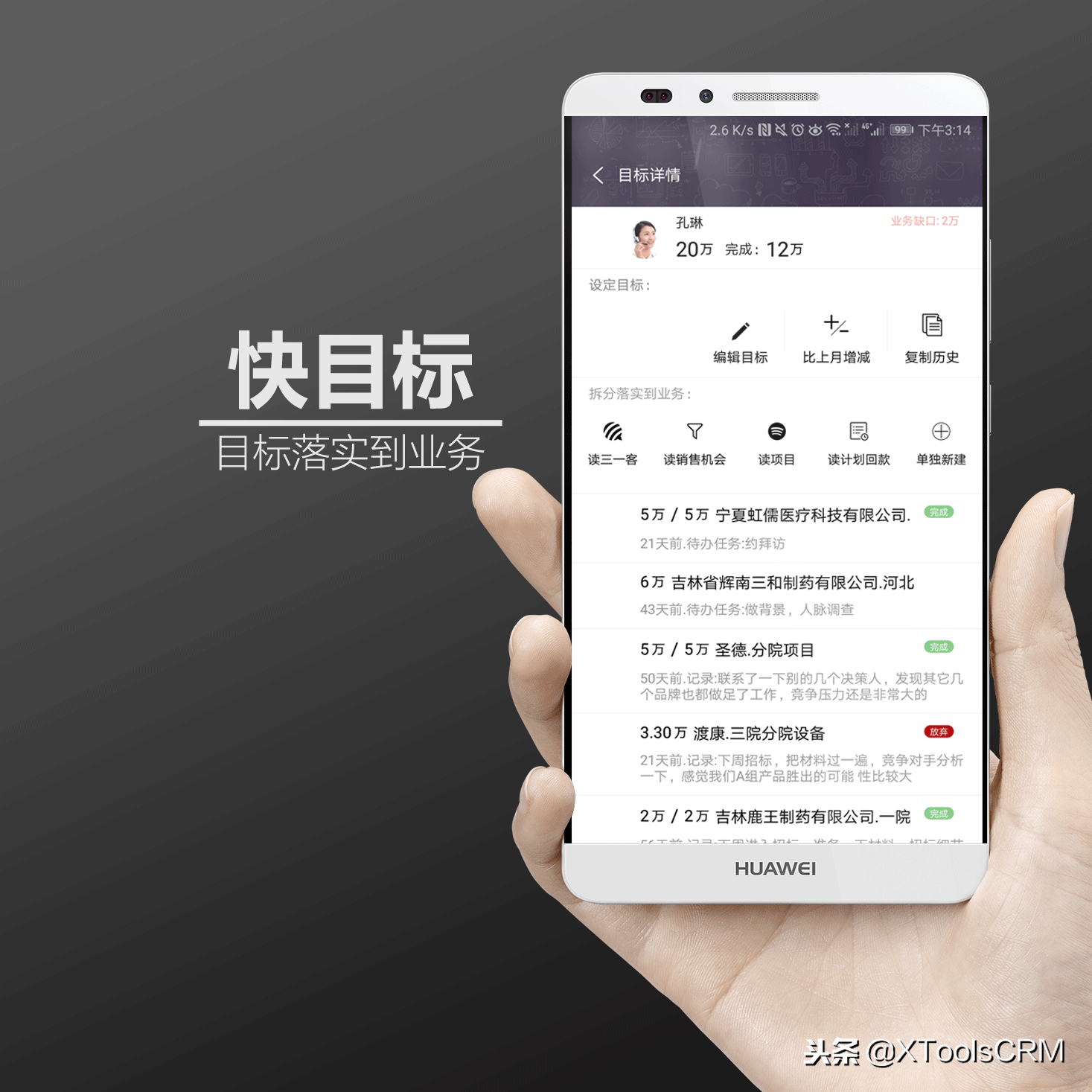 快目标为销售梳理出一条看得见的目标线路图,帮助销售落实三大业务数据: